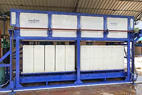 塊冰機(jī)也是制冰機(jī)中的一種,又稱冰磚機(jī)。塊冰機(jī)的分類塊冰機(jī)分為直冷式集裝箱制冰機(jī)、大型直冷塊冰機(jī)、小型直冷塊冰機(jī)、鹽水式塊冰機(jī)。 1、直冷式集裝箱制冰機(jī),將整臺塊冰機(jī)放入集裝箱,方便移動運(yùn)輸。 2、大型直冷塊冰機(jī),產(chǎn)量一般在日產(chǎn)10-30噸,采用分體結(jié)構(gòu),制冰蒸發(fā)器和機(jī)組分開,方便運(yùn)輸和安裝。 3、小型直冷塊冰機(jī)